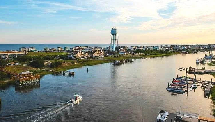 Holden Beach is a seaside town that offers small-town charm and unspoiled beauty in Brunswick County, North Carolina. Holden Beach has 9 miles of oceanfront and along it’s picturesque Intracoastal Waterway, keep your eyes peeled for dolphin playfully diving at the surface.